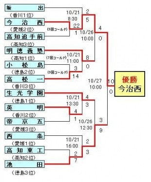 | 今治西 | 0 | 0 | 0 | 0 | 0 | 1 | 5 | 4 | × | 10 |