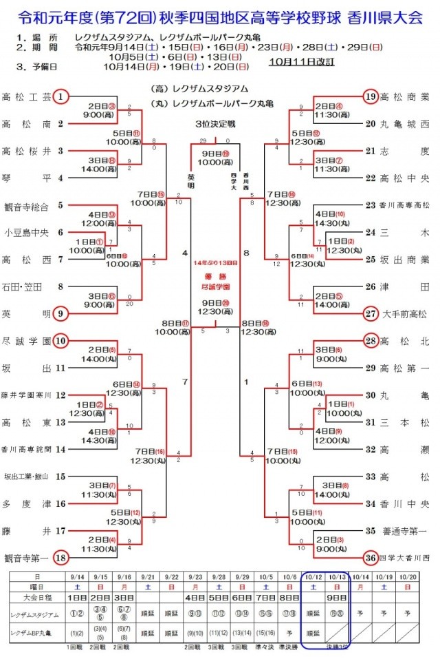 | 大手前高松 | 3 | 2 | 0 | 2 | 4 | 0 | 0 | 1 | × | 12 |