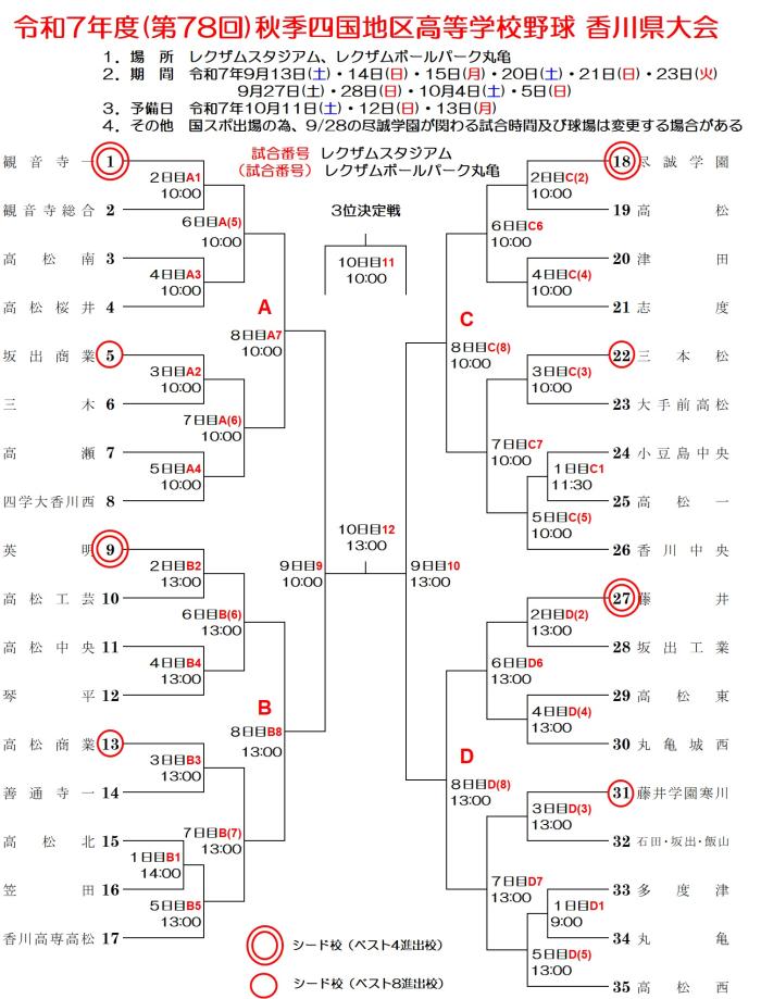 | 高松中央 | 0 | 0 | 0 | 0 | 3 | 2 | 0 | 0 | × | 5 |