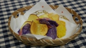 野菜を薄切りして、水にさらしあく抜きした野菜の水分を拭き取り油で揚げたものです。