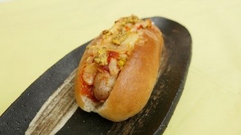 ○パンの切り口にバターを塗り、ウインナーと一緒に