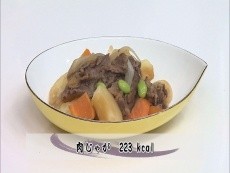 ○平皿に手前からじゃが芋、牛肉、人参、玉葱の順に並べる。