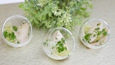 【鶏肉と文旦とパセリ、白ワインヴィネガーソース】 ① 塩こしょうした鶏肉と、半分に切った新玉ネギをそれぞれガラス皿に乗せラップをして 電子レンジにかける。ラップが張り付くようになったらOK。 ② 鶏肉と玉ねぎは粗熱がとれたら、ひと口大に切る。 ③ ②に白ワインヴィネガー、塩、胡椒各少々を入れ、塩が溶けるまで混ぜる。 ④ ③にパセリのみじん切りオリーブオイルを入れてよく混ぜる。 ⑤ 文旦の果肉と残った身から絞ったジュースを混ぜて、最後に皮をすりおろし香りを加える。