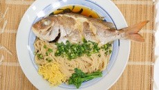 ⑥ 器に鯛を盛り、周囲にそうめんを盛る。