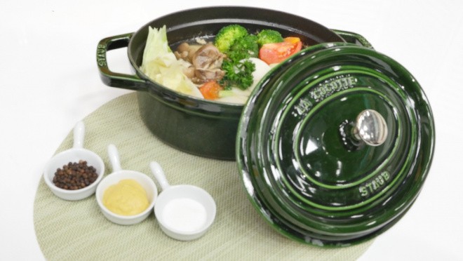 【鶏もも肉のポトフ】4人分 鶏もも肉 2枚 塩 肉の1% 出汁(水) 適量 玉ねぎ 1個 にんじん1本 きのこ類 200g 季節野菜 300g 作り方 ①鶏肉を塩に一晩漬けておく。 ②鍋にたっぷりの出汁、塩鶏を入れ強火にかける。 ③沸いたら灰汁を取り弱火で煮る。 ④野菜類は適宜切っておく。 ⑤10分ほど煮たら野菜を入れて火を通す。 ⑥鶏肉に串を刺し、スッと刺さったらスープの味を調える。