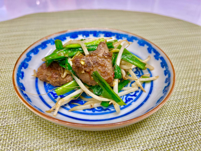 中華料理の定番で、中国名を直訳すると「ニラレバ炒め」となる。