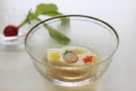 ③ 裏ごしを通して流し缶に流しいれ、冷やし固める。