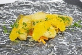 豚バラ肉のピオーネ葡萄白ワイン煮込み