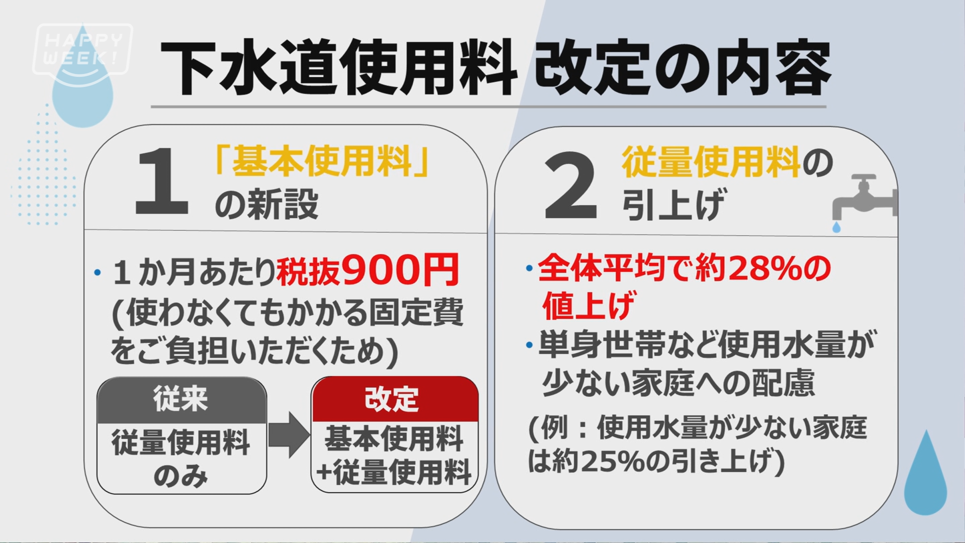 改定では大きく2つの見直しを行っており、使用水量が少ない方の負担にも配慮した改定となっています!