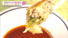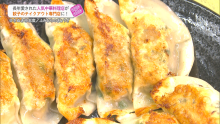 国産の豚ミンチ100%とシャキシャキ食感の野菜がたっぷりのボリューミーな餃子です。
