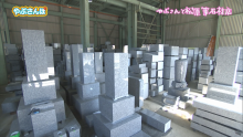 松原等石材店で、庵治石の魅力を学ぶやぶさん。