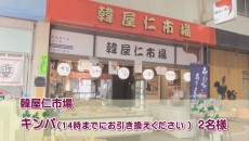韓屋仁市場からキンパを2名様にプレゼントいたします。