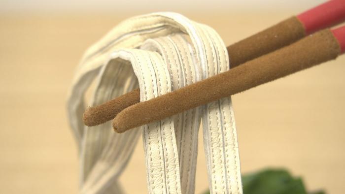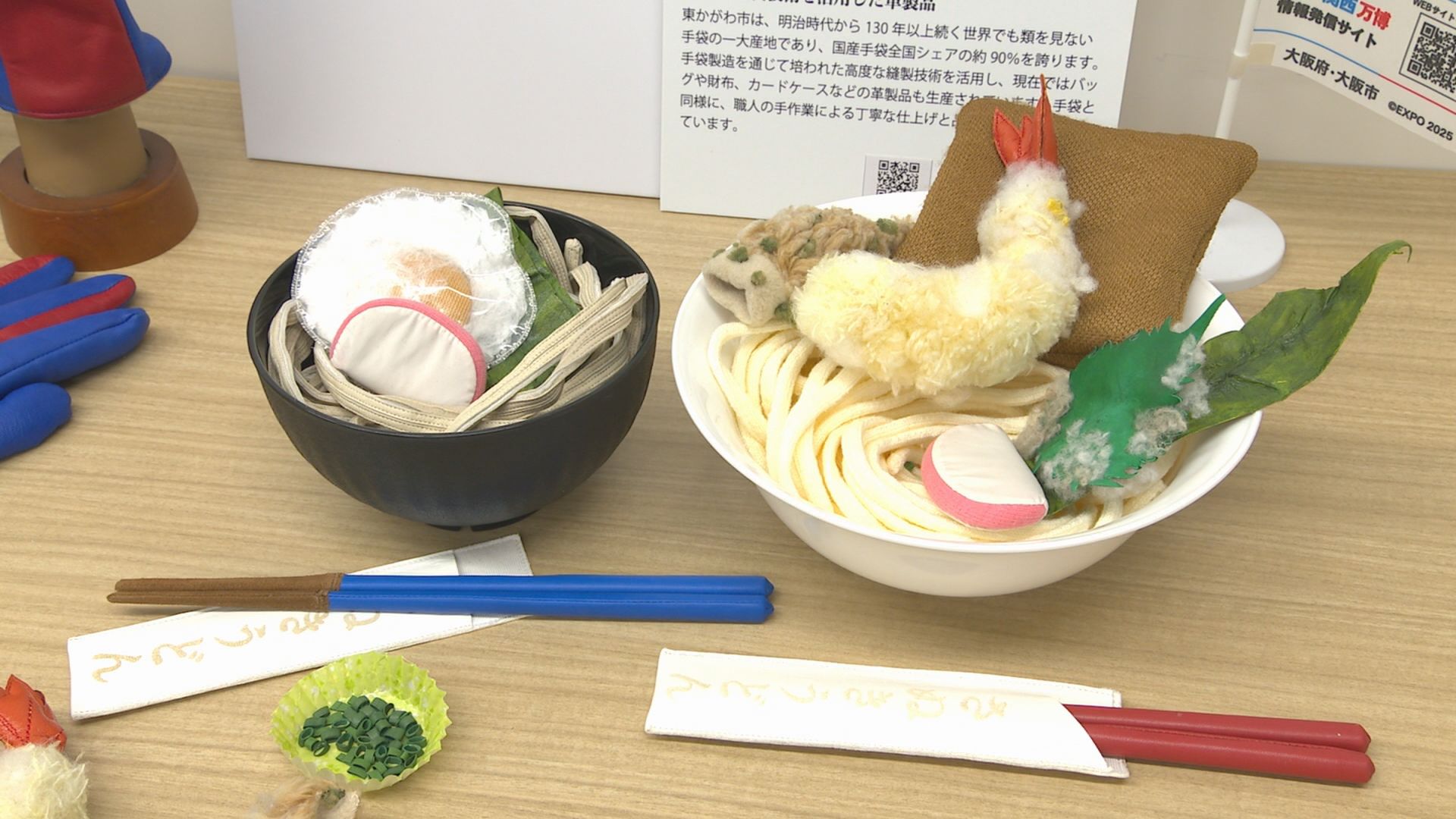 うどん手袋とは、大阪・関西万博の香川県催事東かがわ市ブースで展示された「観賞用のうどん」で