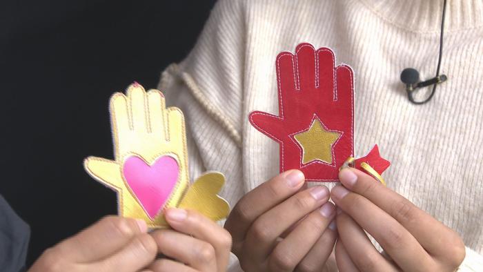 さらに手袋のキーホルダー作りを体験させていただきました!