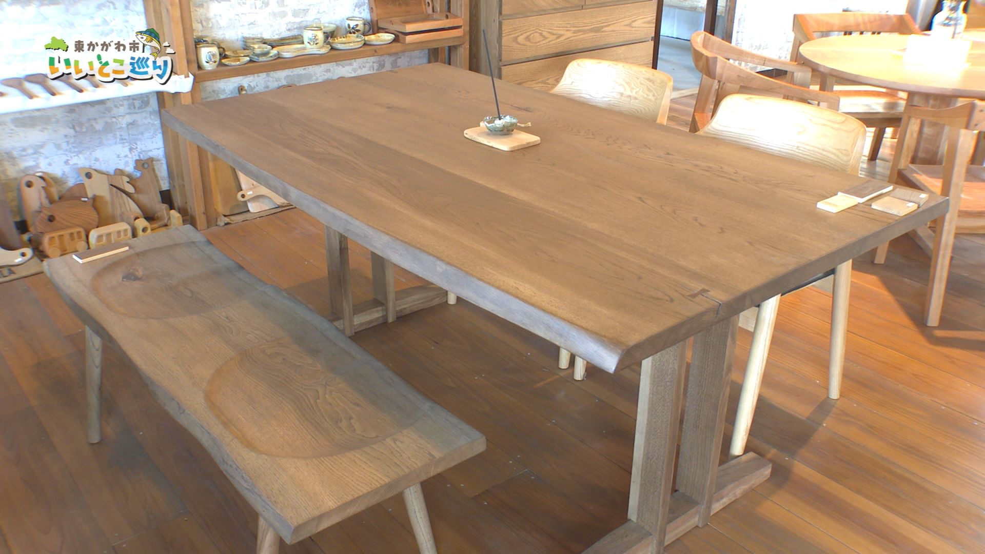 コナラや桜、楓などさまざまな木材で作られた家具や小物がズラリ。