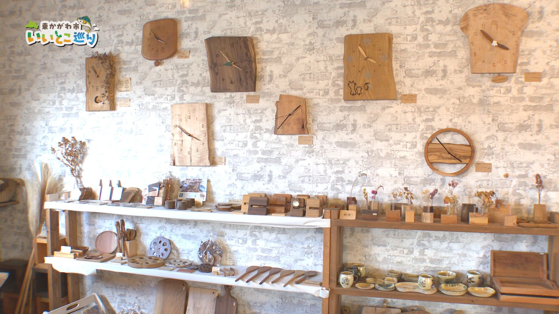 家具のほかにも木材で作られた時計やブローチ、積み木などあたたかみを感じる小物もたくさん並んでいます。