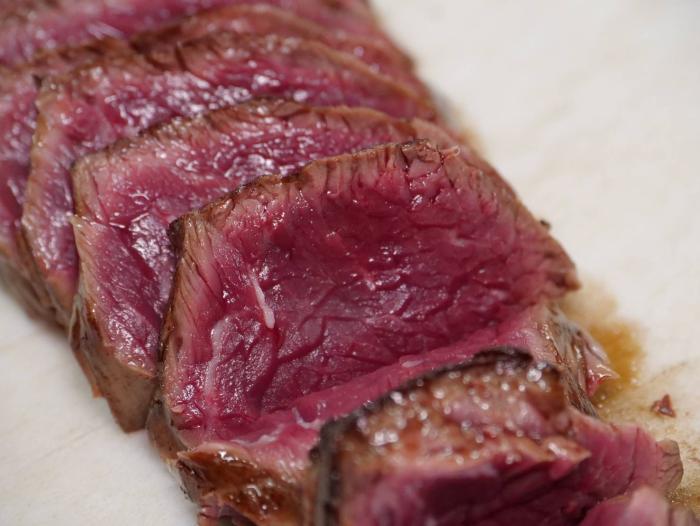 ミディアムレアの絶妙な焼き加減で、肉の旨味が口いっぱいに広がります。