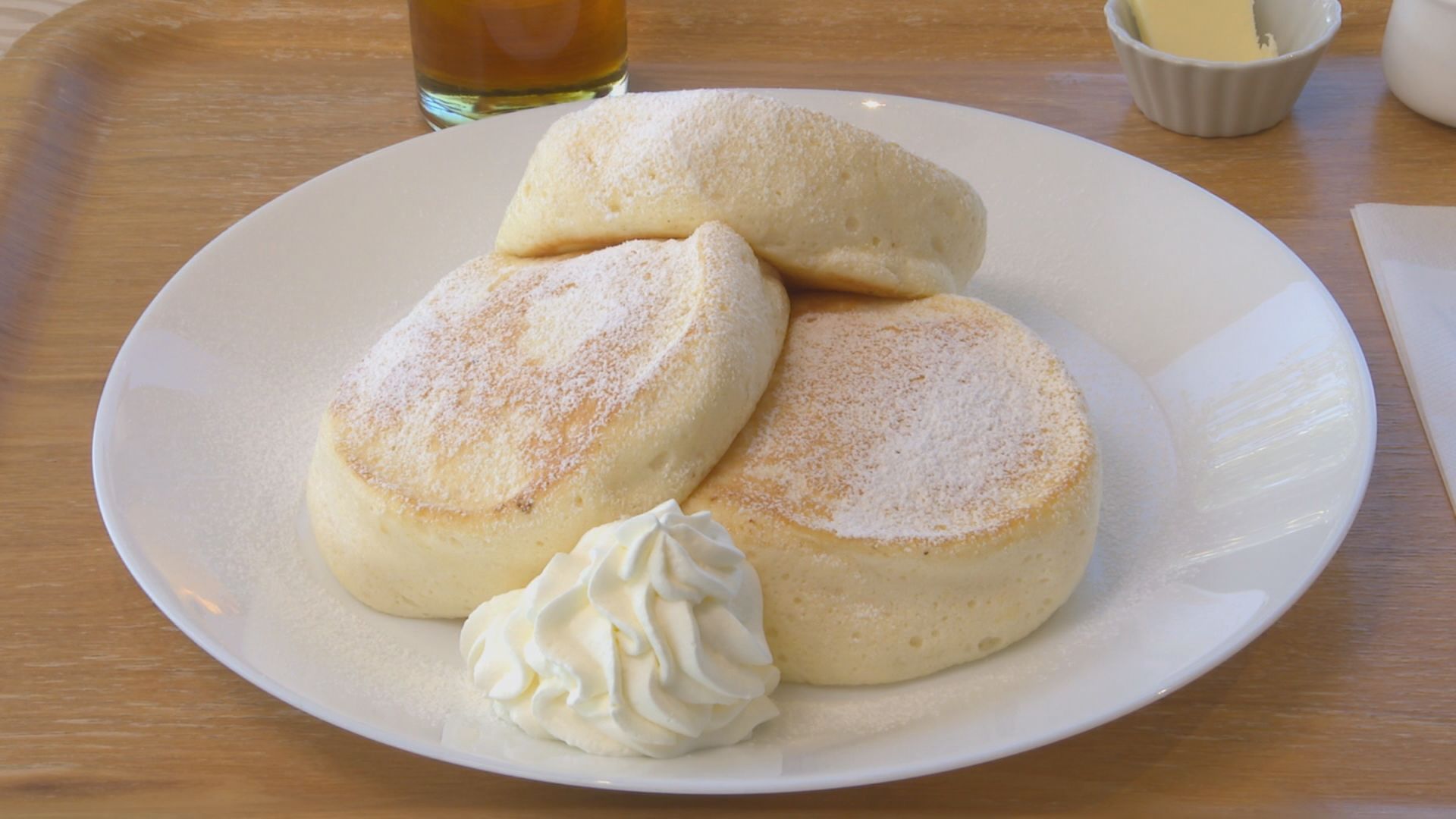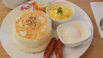 どちらもパンケーキを使ったメニューで、パンケーキの生地にはこだわりの卵で作ったカスタードが練りこまれています。