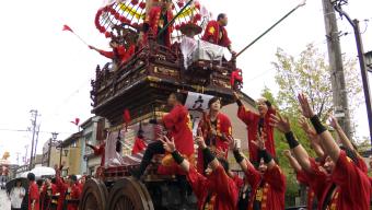 太鼓台と呼ばれる巨大な山車が市内には54台あり、10月16日から3日間練り歩きます。
