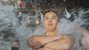 毎年行修者と呼ばれる4人の若者が、1月13日から極寒の中で何度も冷水をかぶって鍛錬を行い、