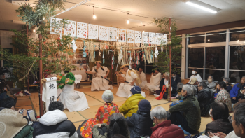 毎年五穀豊穣を願って町内各地で舞われ、集落ごとに独自の所作や形式が伝承されています。