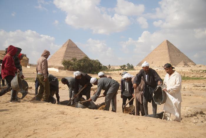 三大ピラミッドがそびえるギザ台地で、マーク・レーナー博士率いる考古学者たちが、
