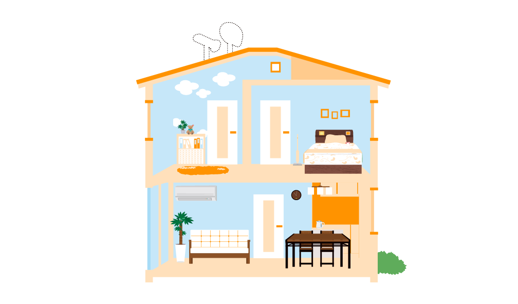 - アンテナが倒れる心配がなくメンテナンスも不要!悪天候による映像の乱れも少なくなり、外観もスッキリ