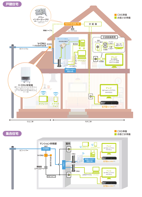 ピカラ光てれびとは、地上波放送や衛星放送を受信し、光ファイバーを使って各家庭までお届けするシステムです。通常のテレビ放送だと各建物に設置したアンテナで放送を受信するのですが、ピカラ光てれびでは大型のアンテナで受信して、その受信した放送を光ファイバーを使って各戸へ配信いたします。